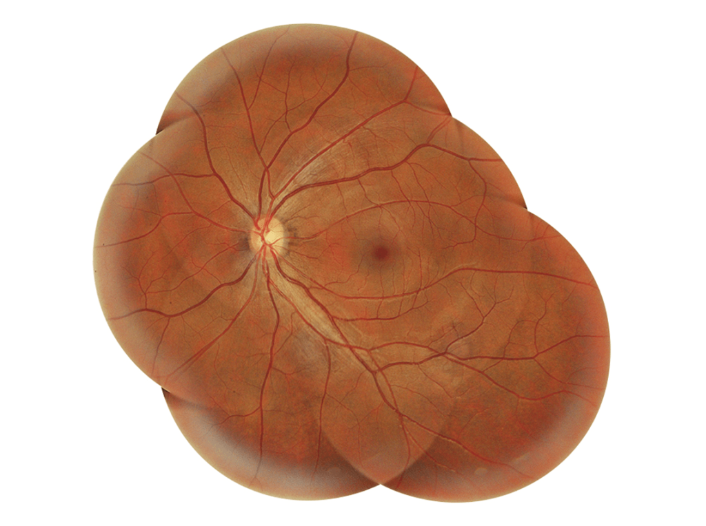 - Automatically aligns and merges up to seven fundus images into a single, high-resolution panoramic overview, making it easier to evaluate lesion size, location, and extent at a glance.